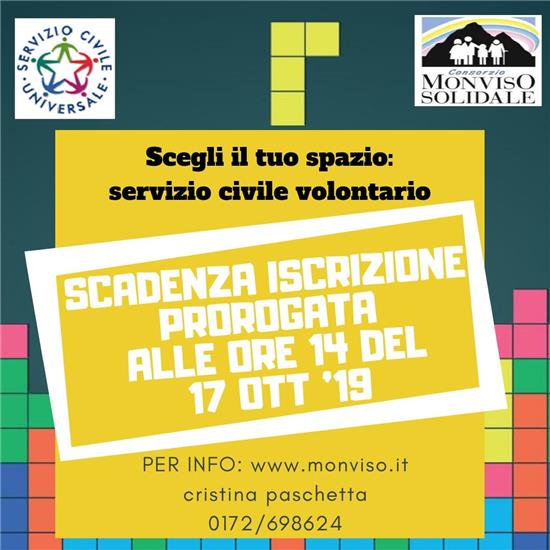 E' stato prorogato il termine ultimo di iscrizione al bando del Servizio Civile fino al 17 ottobre a ...