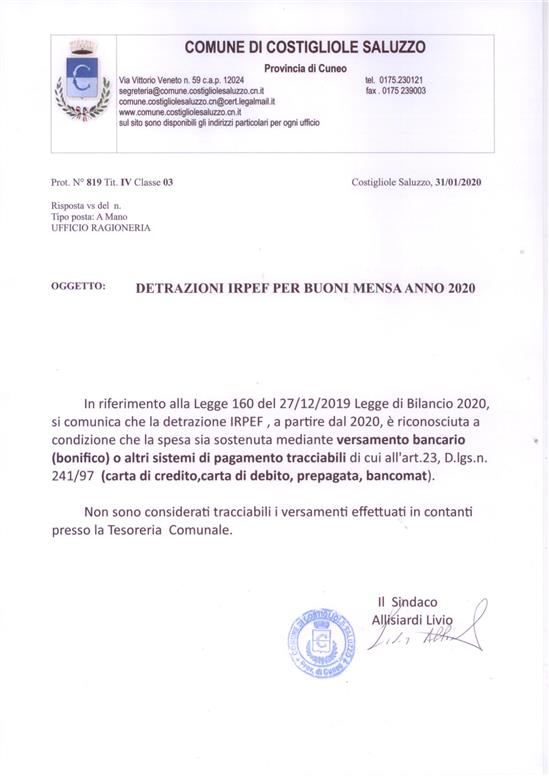 DETRAZIONI IRPEF PER BUONI MENSA A PARTIRE DALL'ANNO 2020 ...
